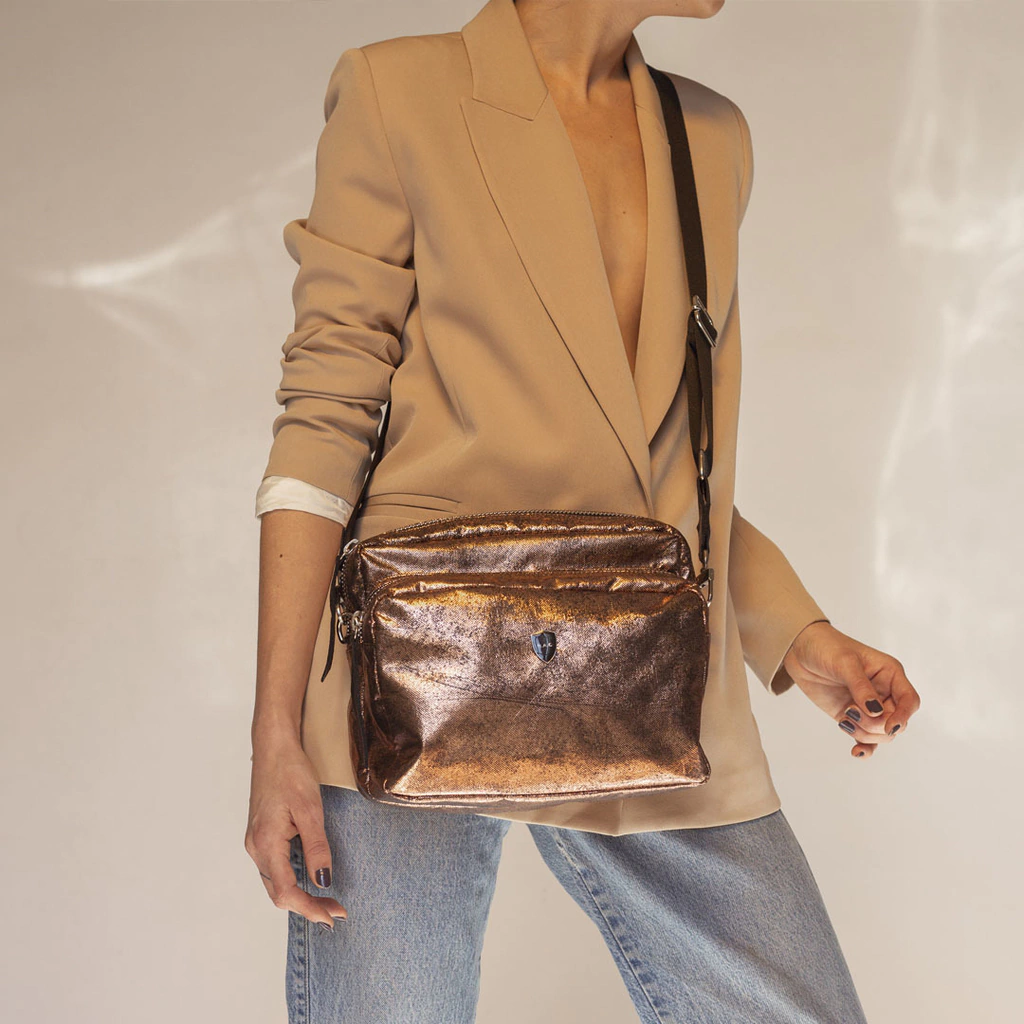 Características destacadas: - Cierres y herrajes niquelados que aseguran durabilidad y estilo. - Forrado con bolsillo interno para organizar tus pertenencias y dos cierres exteriores para un acceso rápido. - Ideal para llevar lo que necesites, convirtiéndose en tu compañero perfecto en cualquier ocasión.